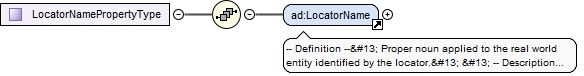 <element name="LocatorName" type="ad:LocatorNameType" substitutionGroup="gml:AbstractObject"><annotation><documentation>-- Definition -- Proper noun applied to the real world entity identified by the locator. -- Description -- NOTE The locator name could be the name of the property or complex, of the building or part of the building, or it could be the name of a room inside a building.</documentation></annotation></element>