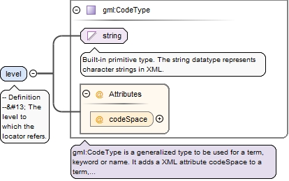 <element name="level" type="gml:CodeType"><annotation><documentation>-- Definition -- The level to which the locator refers.</documentation></annotation></element>