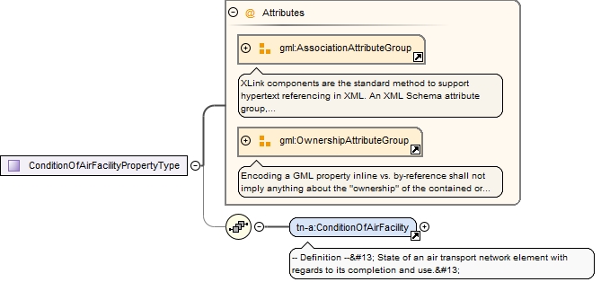 <element name="ConditionOfAirFacility" substitutionGroup="tn:ConditionOfFacility" type="tn-a:ConditionOfAirFacilityType"><annotation><documentation>-- Definition -- State of an air transport network element with regards to its completion and use. </documentation></annotation></element>