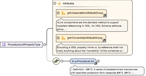 <element name="ProcedureLink" substitutionGroup="tn-a:AirLink" type="tn-a:ProcedureLinkType"><annotation><documentation>-- Definition -- A series of predetermined manoeuvres with specified protection from obstacles. -- Description -- SOURCE [Procedure - AIXM5.0]. NOTE 1 A defined airway connector designed for channelling the flow of traffic as necessary for the provision of air traffic services during the take-off or landing phase, which links an airport/heliport to a significant point, usually connected to one or more air routes. NOTE 2 When a airport/heliport is not connected with a standardized airway connector to the rest of the air network, this object can be used as a fictitious connector between the airport/heliport and a significant point on one or more ATS routes - for example for VFR (Visual Flight Rules) flights. NOTE 3 Nevertheless, three main types of standardized Procedures are usually defined for IFR (Instrument Flight Rules) flights: - Standard Instrument Departure (SID), corresponding to the take-off phase. - Standard Instrument Arrival (STAR), corresponding to the initial approach during the landing phase. - Instrument Approach Procedure (IAP), corresponding to the final approach and arrival during the landing phase. </documentation></annotation></element>