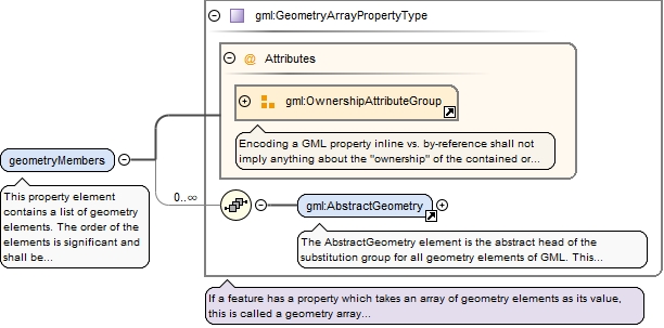 <element name="geometryMembers" type="gml:GeometryArrayPropertyType"><annotation><documentation>This property element contains a list of geometry elements. The order of the elements is significant and shall be preserved when processing the array.</documentation></annotation></element>